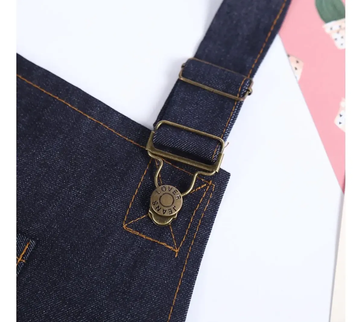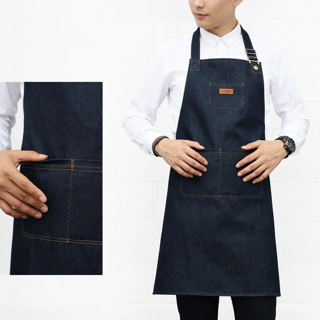 Fabricado en mezclilla (denim), ofrece una buena combinación entre durabilidad y comodidad. Su diseño tipo pechera permite una cobertura frontal completa, mientras que sus bolsillos amplios facilitan el acceso rápido a herramientas, accesorios o utensilios de trabajo.