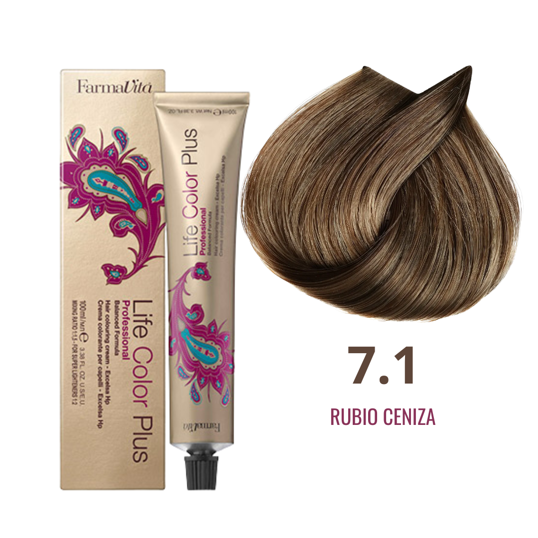 Tintura permanente Life Color Plus 7.1 Rubio Ceniza. Color uniforme, duradero y con excelente cobertura de canas.