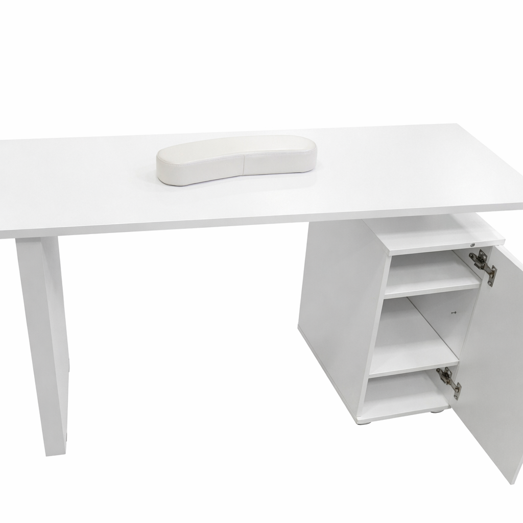 Además, la mesa incluye un cojín apoya manos, proporcionando mayor comodidad para la clienta durante el servicio de manicure.